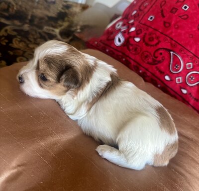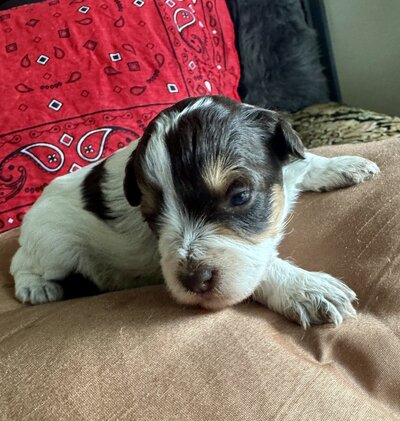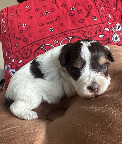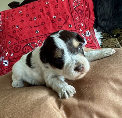 A detailed contract/bill of sale/genetic health guarantee will be sent to you following receipt of deposit. Puppies will be picked up at 8 weeks. They will have been introduced to potty and obedience training but will still need your patience, love, and guidance to complete the training. They come with their first vaccines, tail docked or non-docked preference, dew claws removed, vet health checked, first groom, puppy care package, deworming per schedule. and 5-year genetic health guarantee. Pictures and/or videos sent 3 days after birth, when eyes open around 2-3 weeks, and walking playing with first groom 5-6 weeks old of your puppy upon request.